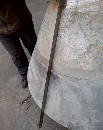 2014-06-10 客戶HP500 破碎機(jī)動錐體在更換襯板時發(fā)現(xiàn)鎖緊螺栓不能拆卸,運(yùn)到我公司維修。由我司技術(shù)人員判定為動錐體內(nèi)螺紋損壞,同時檢查動錐體外錐面,發(fā)現(xiàn)磨損嚴(yán)重。