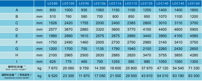 以上數(shù)據(jù)所表示的破碎機(jī)產(chǎn)量,是針對平均比重為 2.7t/m 3 ,給料能夠順利進(jìn)入破碎腔、無架橋卡堵現(xiàn)象,給料剔除小于排礦口細(xì)料時(shí)取小值,含細(xì)料時(shí)取大值。產(chǎn)量可能隨給料方式和物料性質(zhì)諸如粒度組成、含水含泥量、松散密度和可碎性而變化。